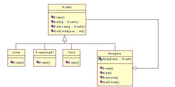 Deoarece Imagine este un container, ea va include si operatiile specifice containerelor, deci interfata ei este aceeasi cu cea a clasei Grafic. Urmarea este ca un element al containerului Imagine poate fi, la randul sau, un al container. Acest mod de a combina obiectele in structuri ierarhice se numeste compunere recursiva.