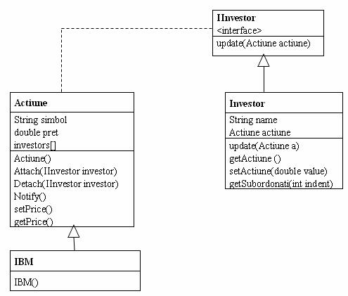 o Implementeaza interfata de actualizare Observer pentru a-si pastra starea in concordanta cu cea a subiectului.