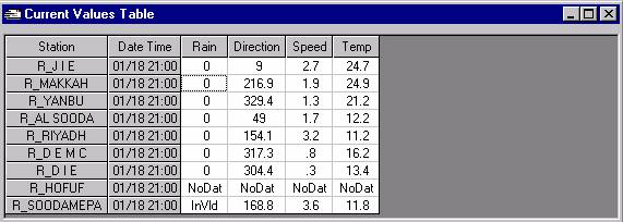 Datele afisate sunt mereu cele mai recent colectate. Daca aceste date sunt mai vechi decat perioada definita de utilizator numele statiei vor fi afisate in rosu. Daca nu s-au primit date de la o statie valorile vor avea un fundal albastru.