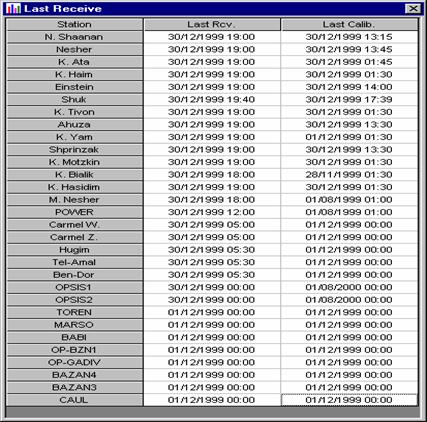 Toate numele statiilor sunt listate impreuna cu data si ora la care datele au fost receptionate ultima oara de la acea statie. Pentru statiile care efectueaza si inregistreaza calibrari automate, se afiseaza de asemenea ultima calibrare receptionata.