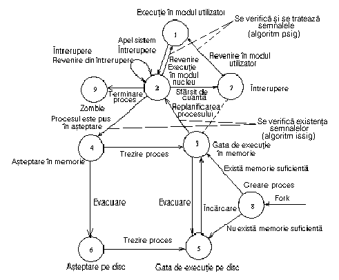 Figura 8.6. Verificarea si tratarea semnalelor in diagrama de stari ale