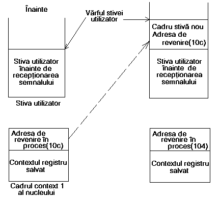 Figura 8.11. Stiva utilizator inainte si dupa receptionarea semnalului