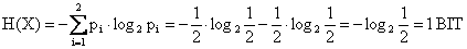 Daca se considera doua evenimente - cifrele 0 si 1 ale sistemului de numeratie binar - acestea se produc cu probabilitatile p = 1/2.