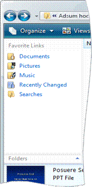 Panoul de navigare din fiecare Explorer a fost reconceput pentru a face mai simpla navigarea pe calculator si gasirea rapida a elementelor cautate. Vizualizarea prestabilita din Panoul de navigare este o serie de legaturi care duc catre Explorerul de documente, Explorerul de fotografii sau Explorerul de muzica. De asemenea, exista o legatura Cautari care va permite sa vizualizati toate Folderele de cautare de pe calculator.