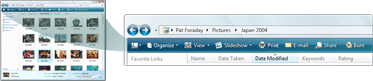Noile ferestre Explorer si functiile asociate cu acestea, cum ar fi cautarea desktop integrata si pictogramele live va ajuta sa lucrati cu datele in noi moduri mai clare si mai eficiente.