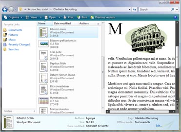 Panoul de previzualizare din Explorerul de documente va ofera o imagine mai clara asupra documentelor, a foilor de calcul si a prezentarilor, fara a fi necesar sa deschideti fisierele, daca aveti Microsoft Office 2007 instalat.