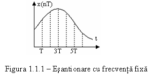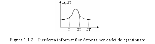 Daca semnalul supus conversiei poate avea variatii rapide in timp, atunci esantionarea la intervale constante de timp (Fig. 1.1.1) nu poate oferi rezultate acceptabile, deoarece se pot pierde informatii din evolutia semnalului (Fig. 1.1.2). Pe de alta parte micsorarea perioadei de esantionare poate duce la cresterea inacceptabila a volumului de date care trebuie prelucrat. Pentru a se evita acest dezavantaj se poate recurge la prelucrarea primara a semnalelor prin metode analogice.
