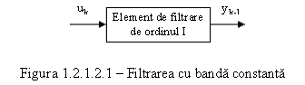 Considerand ca elementul de filtrare de ordinul I are la intrare marimea masurata u k si la iesire marimea filtrata y k, algoritmul de filtrare cu banda constanta prevede urmatoarele conditii: