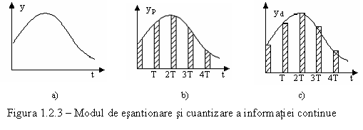 Figura 1.2.3 prezinta etapele prin care trece un semnal de intrare continuu pentru a se transforma intr-un semnal numeric astfel: