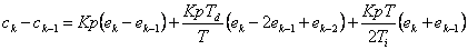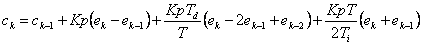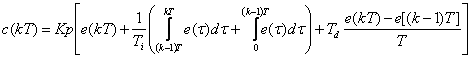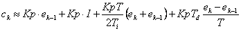 Aceasta din urma relatie (1.2.1.1.7) cuprinde aproximatia derivatei, de care am pomenit mai sus si datorita acestui fapt se scapa informatie (derivata continua contine informatii asupra tendintei viitoare de evolutie, pe cand echivalentul discret inglobeaza doar informatii referitoare la valoarea curenta yk si valoarea anterioara yk - 1).