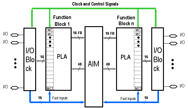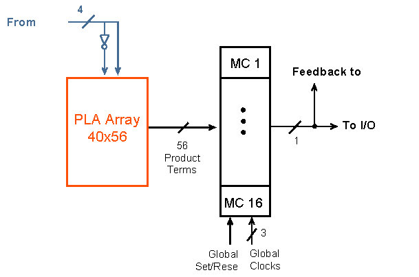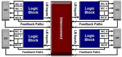 Circuitele CPLD sunt o modalitate de extindere a circuitelor PLD. In figura de mai jos este prezentata schema unui astfel de circuit CPLD traditional: