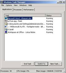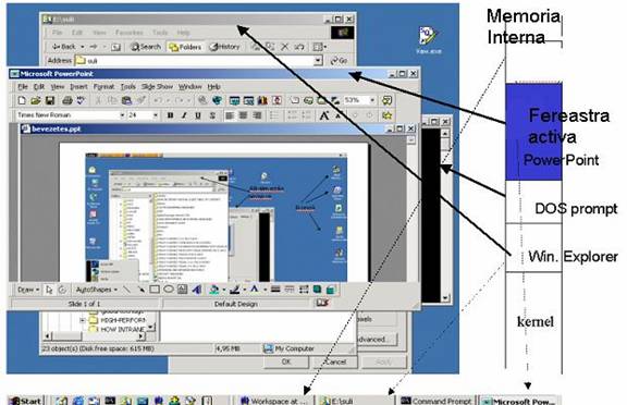 Se poate observa, ca tuturor programelor incarcate in memorie corespund ferestre de pe desktop, cel putin sub forma unei icoane de pe linia de stare.