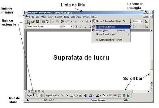 si pentru iesirea din aplicatie. Comenzile din linia de meniuri
