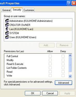 Aceste permisii se seteaza prin meniul contextual (click dreapta peste obiect)- comanda Properties- fisa Security. Aici putem defini permisii la nivelul utilizatorilor sau a grupelor referitoare la citire, scriere, executie etc. Dintre drepturile de acces si permisii vor fi active cele mai restrictive.