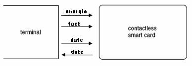 Energia este transferata de un camp sinusoidal magnetic alternativ cu frecventa de 4.9152MHz, care trece prin una sau mai multe suprafete de cuplaj inductive, depinzand de cate bobine de cuplaj sunt in card.Terminalul trebuie sa genereze toate cele 4 campuri.