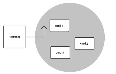 Cand cardurile fara contact sunt folosite exista posibilitatea ca mai multe carduri sa se afle in zona unui terminal in acelasi timp.Aceasta situatie se intalneste pentru sistemele cu zona mare de utilizare a terminalului, dar se poate intalni si la sistemele in care zona de utilizare este relativ redusa, de exemplu doua carduri suprapuse pot fi activate concomitent de catre terminal.Toate cardurile aflate in raza de actiune a terminalului vor incerca sa raspunda la comenzile venite de la acesta.Totusi transmisiile simultane de date vor cauza inevitabil interferente si pierderi de date daca nu sunt luate masuri de a preveni acesta situatie.Metodele tehnice folosite pentru a asigura schimbul liber de date in interiorul razei de actiune al terminalului cu mai multe carduri sunt denumite metode de evitare a coliziunii sau metode anticoliziune.