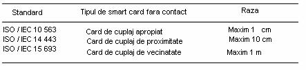 Standardul ISO/IEC 14 443 descrie proprietatile si modurile de operare a smart cardurilor fara contact cu raza de actionare de aproximativ 10cm.Cantitatea de energie care poate fi transferata de la aceasta distanta este suficienta pentru a alimenta un microprocesor.Cu scopul de a permite acestui card utilizarea in infrastructurile pentru cardurile cu contact., acestea au dese ori contacte pe langa componentele de cuplaj pentru operatiile contactless, astfel incat sa fie folosite cu sau fara contacte, dupa preferinta.Acest tip de card este numit "card cu interfata duala" sau "combicard".
