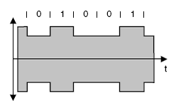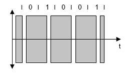 Starea initiala dupa ce campul magnetic a fost generat este aleasa ca fiind 1 logic.Aceasta stare de baza(intervalul t3 in figura 14 ) ramane stabilita pentru cel putin 2ms.Astfel, fiecare schimbare a fazei subpurtatoarei reprezinta o inversare a starii logice de baza producand codul NRZ(non-return to zero).Rata transmisiei de date , cel putin pentru ATR , este de 9600 biti/secunda.