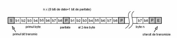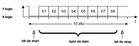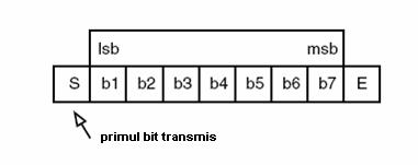 dintr-un bit de start (0 logic) urmat de opt biti de date (cu primul bit