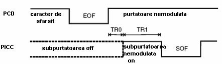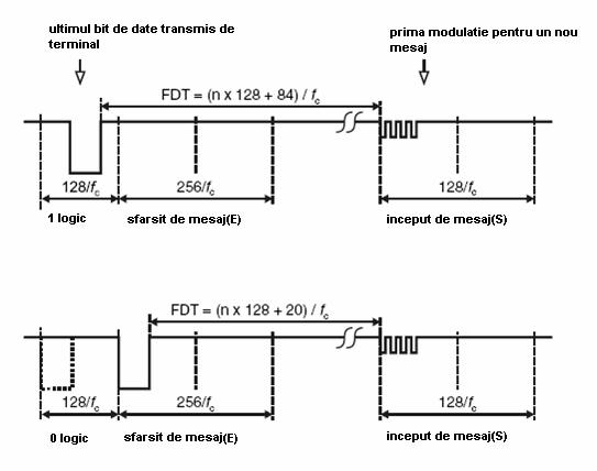 Fig 38 Definirea timpului de asteptare intre un cadru transmis de card si urmatoarele cadre transmise de terminal.Cardul intrerupe subpurtatoarea numai dupa sfarsitul caracterului EOF