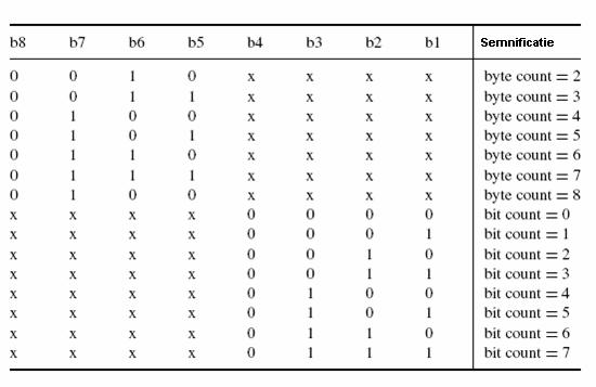 cel mai putin semnificativ) si un bit de stop (1 logic).