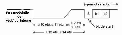 Cadrul SOF contine un singur impuls descrescator urmat de 10 etu de 0 logic, cu impulsul crescator la al 11 lea etu,urmat de un 1 logic pentru cel putin 2 si cel mult 3 etu.