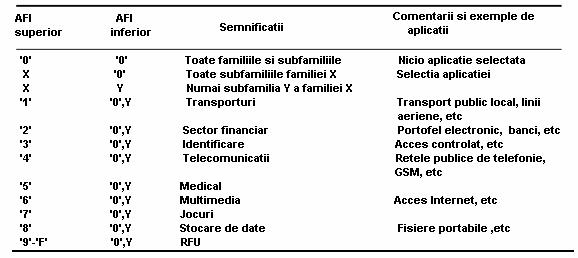 Tabel 7 Codarea byte-ului AFI(Application Family Identifier)