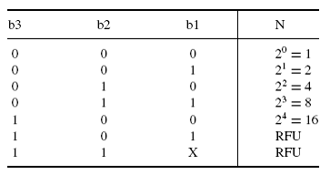 Valoarea FWI este intre 0 si 14, cu 15 fiind rezervat pentru o utilizare ulterioara (RFU).Urmatoarele valori minime si maxime pentru secventa timpului de asteptare pot fi calculate folosind formula :