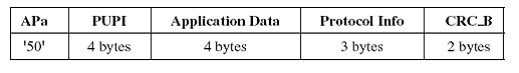 ATQB contine informatii cu privire la parametrii importanti ai smart card-ului de care terminalul are nevoie sa selecteze cardul.Identificatorul PICC pseudo-unic ( PUPI) este numarul de identificare al PICC pentru saltul anticoliziune.Acesta poate contine un numar care este permanent atribuit cardului, sau poate contine un numar aleator generat de card cand este activat de catre campul electromagnetic al terminalului.