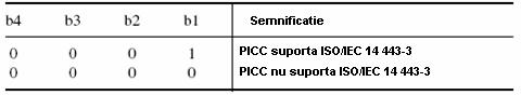 Tabel 16 Protocoale suportate de card.Toate celelalte valori sunt rezervate pentru o utilizare ulterioara(RFU)