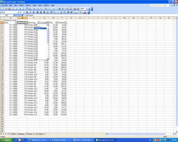 Raspundeti la urmatoarele intrebari cu privire la datele din foaia de calcul Vinzari.