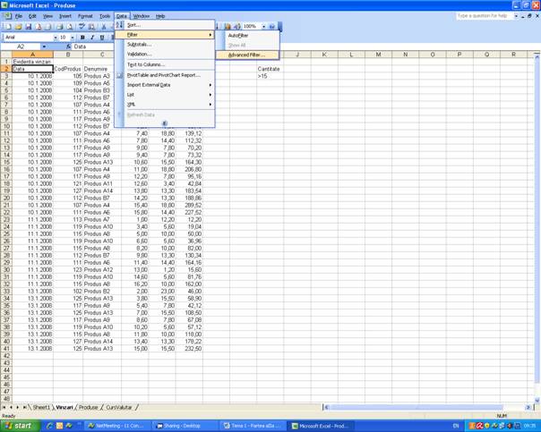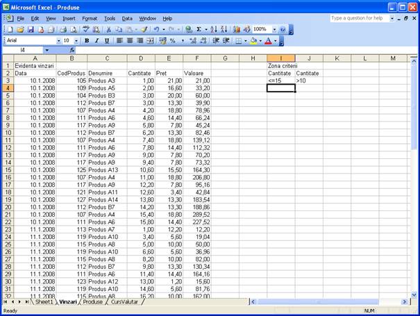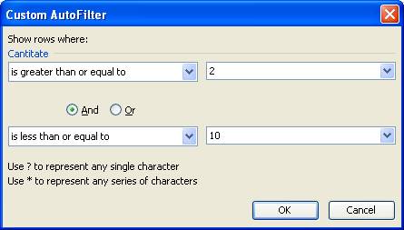 Exemplu: Dorim sa evidentiem toate cantitatile intre 15 si 20 inclusiv.