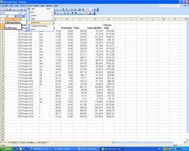 Sa se formateze tabelul cu date dupa urmatoarele conditii: