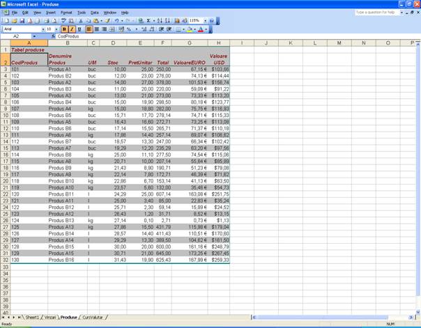Stocarea si manipularea datelor in aplicatii de calcul tabelar