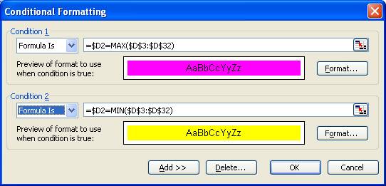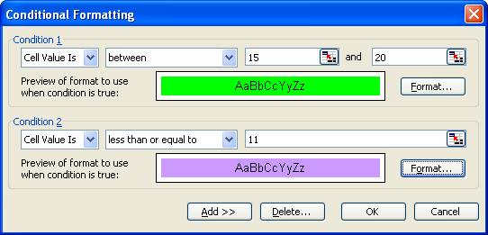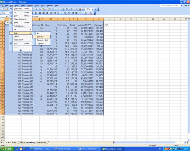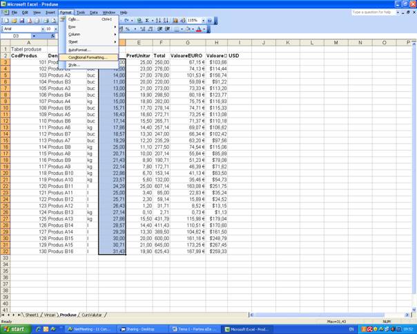Eliminarea: Se selecteaza blocul, Format, Conditional Formating, si DELETE