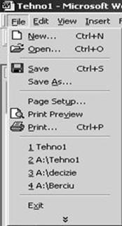 Save – salveaza documentul Word curent (File – Save) |