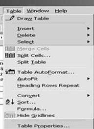 Insert Table – insereaza tabele (Table – Insert table); |
