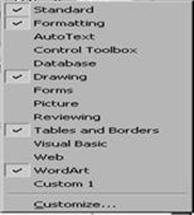 Tables and Borders – afiseaza bara pentru tabele si chenare (View – Toolbars); |