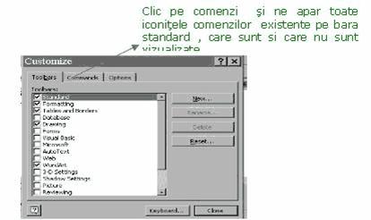 instrumente, comenzi si optiuni) din care ne alegem comenzile dorite: