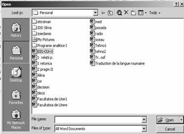 Open – deschide documentele Word existente (File – Open). |