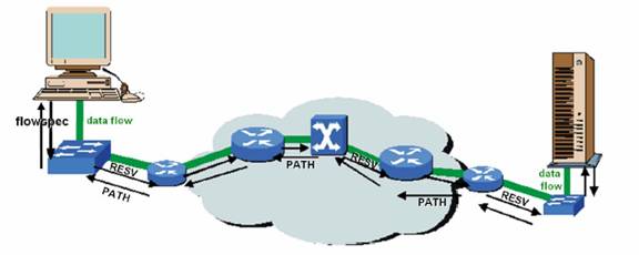 Protocolul de Rezervare a Resurselor-Resource Reservation Protocol (RSVP), asa cum ararta si numele sau, rezerva resursele pentru a intruni cerintele pentru largimea de banda, jitter, si intarzierea pachetelor pe o destinatie anume dintr-o retea printr-un numar de routere.RSVP mai este denumit si "Integrated Services" -Servicii Integrate sau pe scurt IntServ.RSVP trimite pachete IP de control de la un capat la altul al retelei.Aceste pachete de control instiinteaza routerele intermediare despre resursele necesare pentru viitorul flux al unei aplicatii ce foloseste stiva de protocoale TCP/IP si fac rezervari pentru aceste cerinte (largime de banda, cozi de asteptare si altele).Stiva TCP/IP comunica cu primul router,care ,in schimb,comunica cu alte routere pana la destinatie.Protocolul RSVP poate lucra in tandem cu alte tehnici de garantare a calitatii serviciului, cum ar fi cea mai avantajoasa coada de asteptare,pentru a a impune rezervarile de resurse.Doua mesaje principale ale RSVP sunt interschimbate de routere si PC-urile Client: