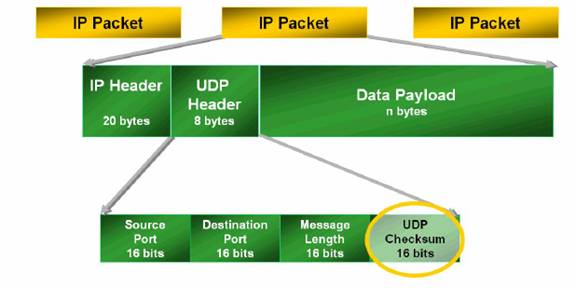 Unul dintre acesti parametrii de ajustare este si campul UDP Checksum din header-ul UDP care ofera informatii despre integritatea pachetului.La trimitere se aplica o ecuatie matematica sofisticata asupra continului pachetului si se stocheaza acest rezultat in campul UDP Checksum.La destinatie se face operatia inversa pentru a se verifica integritatea pachetului.