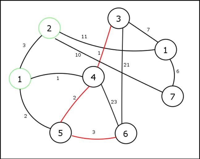Muchiile rosii formeaza un drum care leaga nodurile 3 si 6