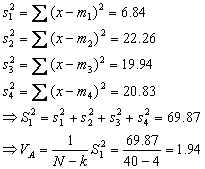 Se obtine astfel dispersia numita "in grup", care se noteaza cu VA si exprima dispersia introdusa in ansamblul de dispersii existente in interiorul fiecarui grup: