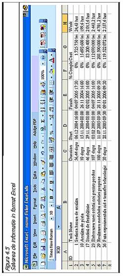 In figura 4.5 se poate vedea care este rezultatul salvarii de informatii in format Excel, asa cum s-a facut in secventa surprinsa de animatia anterioara.