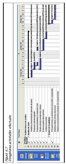 Activitatile inregistrate ca efectuate (total sau partial) sunt marcate in diagrama Gantt asa cum se vede in figura 4.7.