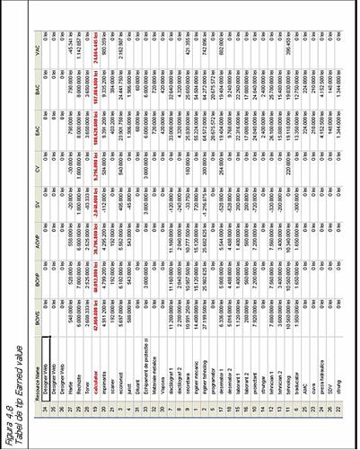 In figura 4.8 este prezentat un tabel de tip Earned Value pentru resurse.
