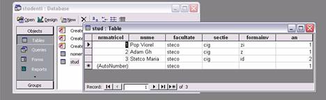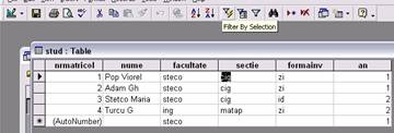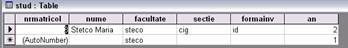 -in campul nrmatricol, de tip AutoNumber, nu putem sa introducem valori, acestea fiind completate automat;