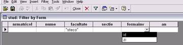 -Pentru unele campuri se pot introduce reguli de validare, ca de exemplu pentru an de studiu an < 5