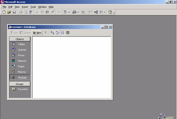 Pentru a scrie o procedura sau o functie Access se alege din fereastra unei baze de date ultima sectiune denumita simbolic Modules.